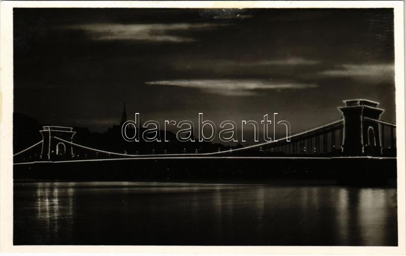 1943 Budapest, a kivilágított Széchenyi Lánchíd este https://www.darabanth.com/hu/409-Gyorsarveres/409.0/Kepeslapok/Magyarorszag~1000005/1943-Budapest-a-kivilagitott-Szechenyi-Lanchid-este~II2532382