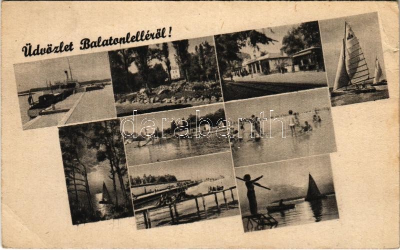 Leírás: Balatonlelle, strand, fürdőzők, vasútállomás, vitorlások (Rb)