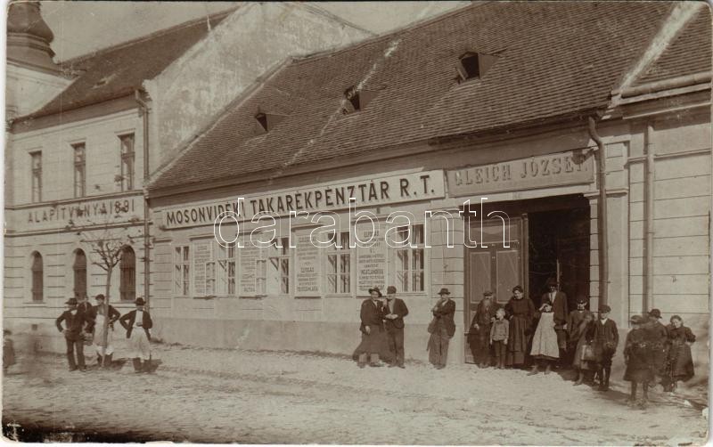 Leírás: Moson (Mosonmagyaróvár), Fő utca, Mosonvidéki Takarékpénztár R.T., Gleich József üzlete. photo (EK)