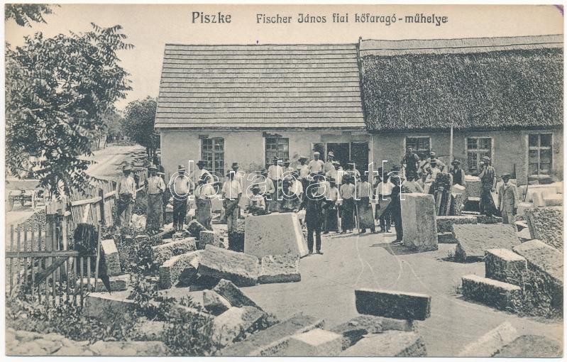 Piszke (Lábatlan), Fischer János fiai kőfaragó műhelye https://www.darabanth.com/hu/409-Gyorsarveres/409.0/Kepeslapok/Magyarorszag~1000005/Piszke-Labatlan-Fischer-Janos-fiai-kofarago-muhelye~II2538050