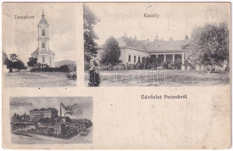 Leírás: Putnok, Templom, Kastély, Gőzmalom. Gärtner Ignác kiadása (ázott / wet damage)