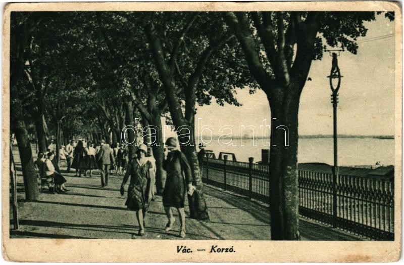 Vác, Korzó. Kurucz József kiadása (EK) https://www.darabanth.com/hu/409-Gyorsarveres/409.0/Kepeslapok/Magyarorszag~1000005/Vac-Korzo-Kurucz-Jozsef-kiadasa-EK~II2537543