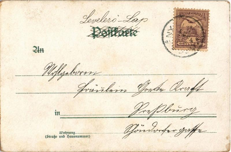Leírás: 1904 Viel Glück im neuen Jahre! / New Year greeting art postcard, lady with pig. "ERIKA" Nr. 579. litho s: Mailick