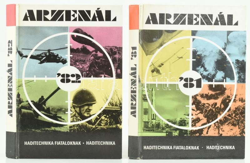 Leírás: Arzenál '81 - '82. Haditechnika fiataloknak. (Két kötet.) Szerk.: Szentesi György. Bp., 1981-1982, Zrínyi Katonai Kiadó. Gazdag képanyaggal illusztrálva. Kiadói kartonált papírkötés, kissé sérült borítóval.
