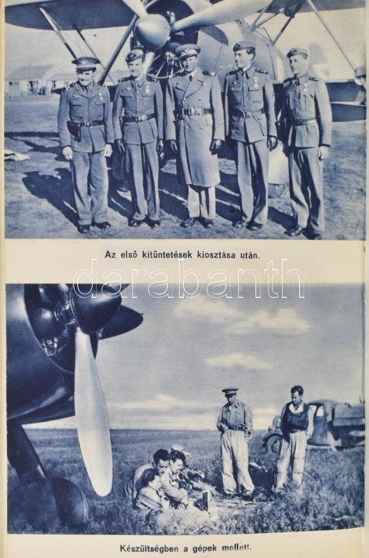 Tomor László: Harcok az orosz égen. A repülő ember I. köt. Bp.,[1942], Magyar Repülő Sajtóvállalat-Stádium, 162 p.+8 (fekete-fehér képtáblával) t. Kiadói félvászon-kötés, kissé kopott borítóval, Klics Ferenc (1924-1993) atléta, diszkoszvető (későbbi olimpikon, edző,1956-ban a magyar olimpiai csapat forradalmi bizottságának az elnöke) részére szóló ajándékozási sorokkal egy 1943-as I. helyezésért, bélyegzéssel.