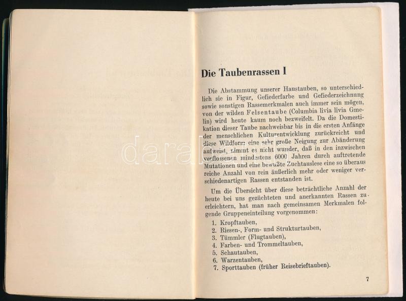 Das Rassegeflügel. Galambtenyésztési zsebkönyv 30 képpel, leírás, tenyészési vonalak. Német nyelven a galambfajták neveinek fordításai mellékelve 81p + 30 t.