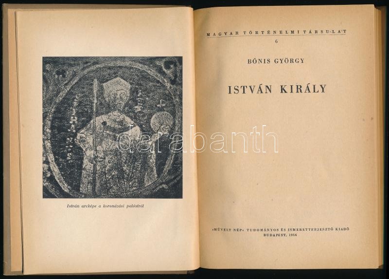 Bónis György: István király. Magyar Történelmi Társulat 6. Bp., 1956.,... https://www.darabanth.com/hu/409-Gyorsarveres/409.0/Konyvek/Konyvek-Tortenelem~2000008/Bonis-Gyorgy-Istvan-kiraly-Magyar-Tortenelmi-Tarsulat-6-Bp-1956-Muvelt-Nep-Kiadoi-~II2541186