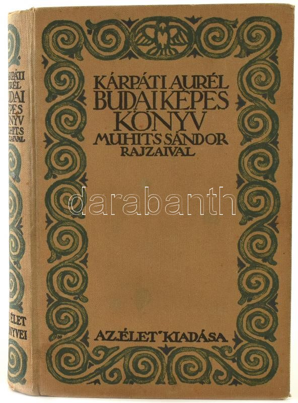 Kárpáti Aurél: Budai képes könyv. Muhits Sándor rajzaival. Bp., 1914, Az "Élet" Irodalmi és Nyomda Rt. A borítót és a címlapot Zádor István (1882-1963) tervezte. Kiadói festett, Leszik-féle egészvászon-kötés, kissé foltos, kopott borítóval.