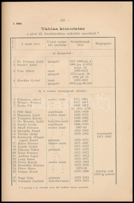 Requinyi Géza: A Pécsi Állami Főreáliskola története. 1857-1894. Pécs, 1895., Pécsi Állami Főreáliskola, 261+3 p. Átkötött kopott félvászon-kötés,kissé foltos lapokkal. Ritka!