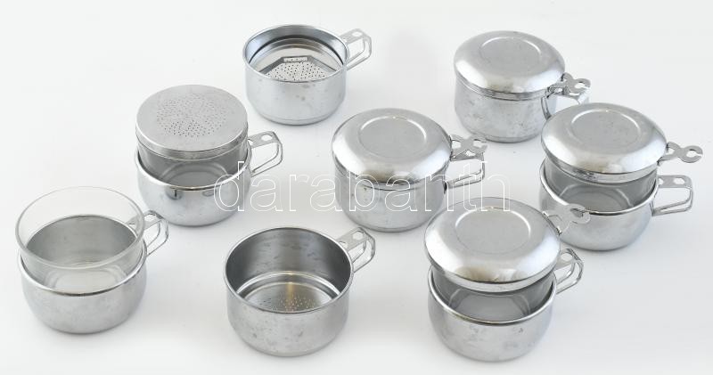 Leírás: 4db egyszemélyes tea vagy kávéfőző, rozsdamentes acél, jelzett: Duralex, francia. m:12cm