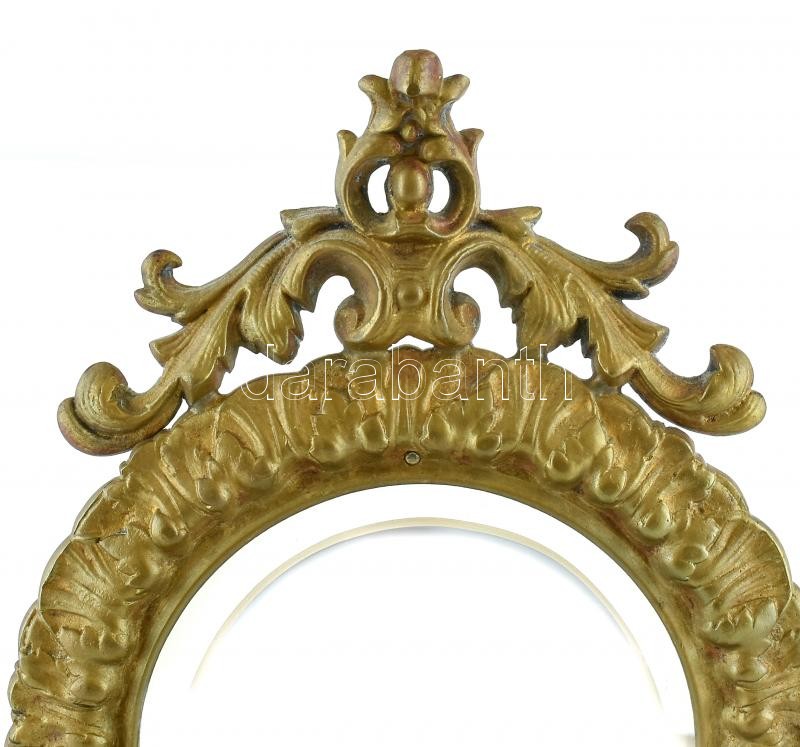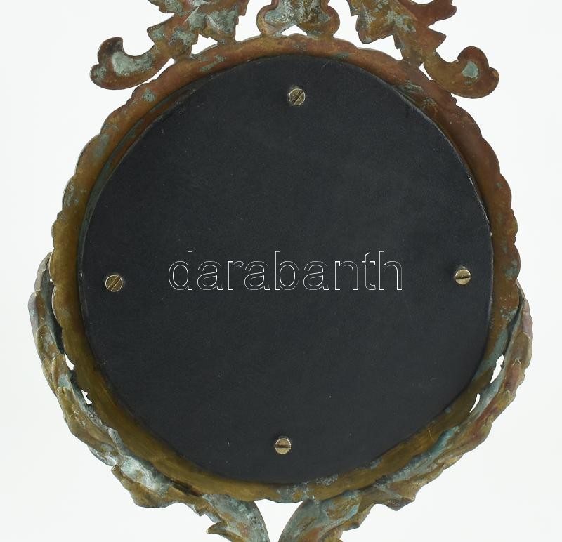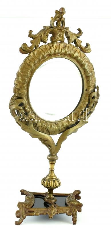 Leírás: Asztali tükör, bronz goglalatban, kopott, jelzés nélkül, m:34,5cm