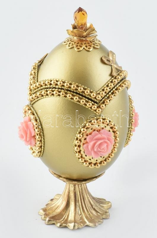Leírás: Ékszertartó dísztojás, fém, műanyag, sérüléssel m:11cm