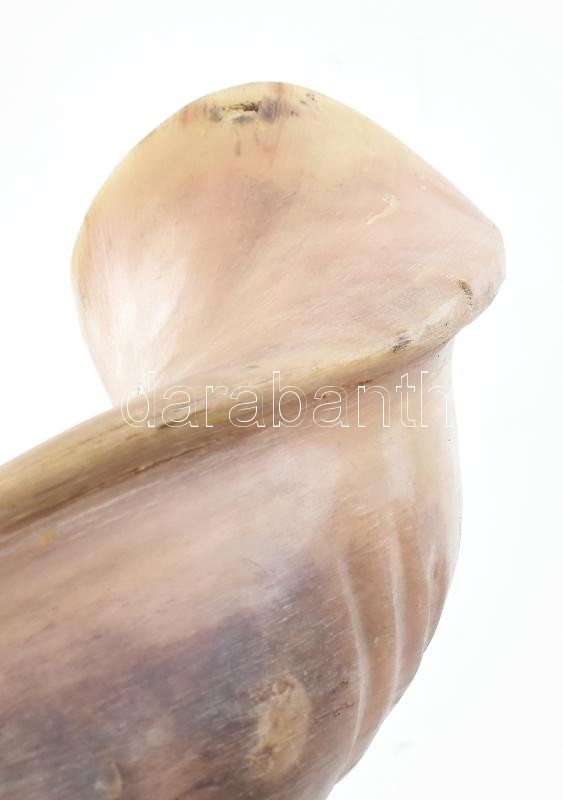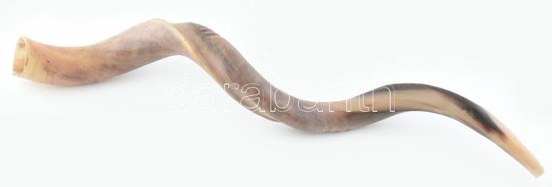 Leírás: Ősi zsidó hangszer, a rós hásáná reggeli szertartás központi eleme is a sófárfújás. Sófár, kosszarv, kopott, h: 80cm