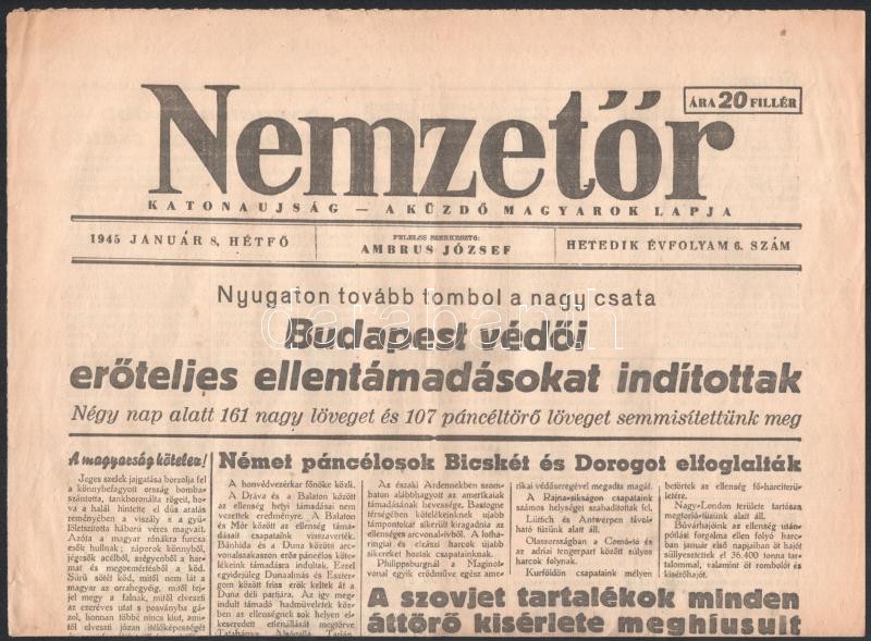 1945 Nemzetőr katonaújság - A küzdő magyarok lapja, 7. évf. 6. szám, b... https://www.darabanth.com/hu/409-Gyorsarveres/409.0/Mutargy-papirregiseg-egyeb/Militaria~500028/1945-Nemzetor-katonaujsag-A-kuzdo-magyarok-lapja-7-evf-6-szam-benne-Budapest-ostroman~II2530928