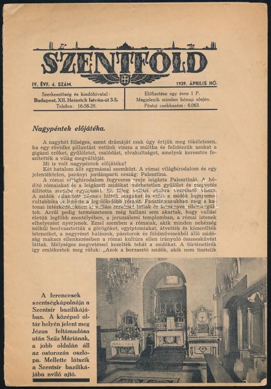 1939 A Szentföld IV. évfolyamának 4. száma https://www.darabanth.com/hu/409-Gyorsarveres/409.0/Mutargy-papirregiseg-egyeb/Nyomtatvanyok~2000003/1939-A-Szentfold-IV-evfolyamanak-4-szama~II2537079