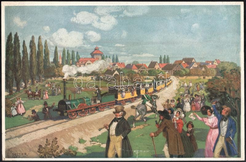 Leírás: G. Selzer: Integetők, nyomat, gyűrődésekkel, szakadásokkal, 21×32 cm