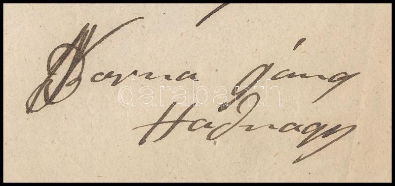 Leírás: 1847 Adományról szóló levél Barna János hadnagy aláírással