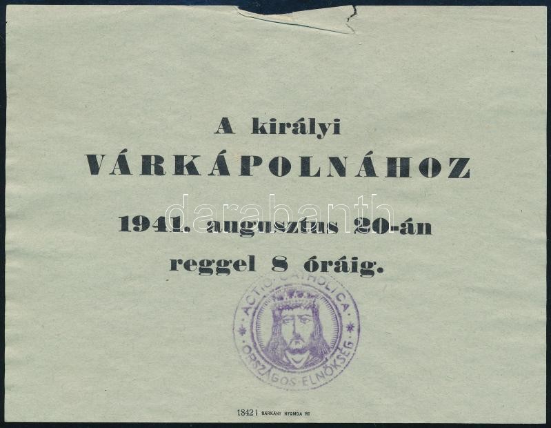 1941 Actio Catholika belépőjegy a királyi várba Szent István napi ünne... https://www.darabanth.com/hu/409-Gyorsarveres/409.0/Mutargy-papirregiseg-egyeb/Okmanyok~500018/1941-Actio-Catholika-belepojegy-a-kiralyi-varba-Szent-Istvan-napi-unnepsegre~II2541597