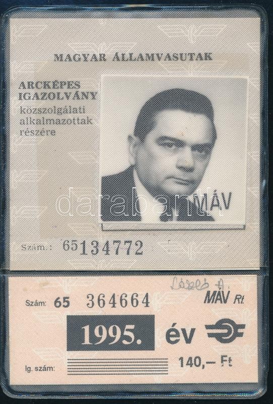 Leírás: 1995 Fényképes MÁV közszolgálati igazolvány 50%-os kedvezmény váltására
