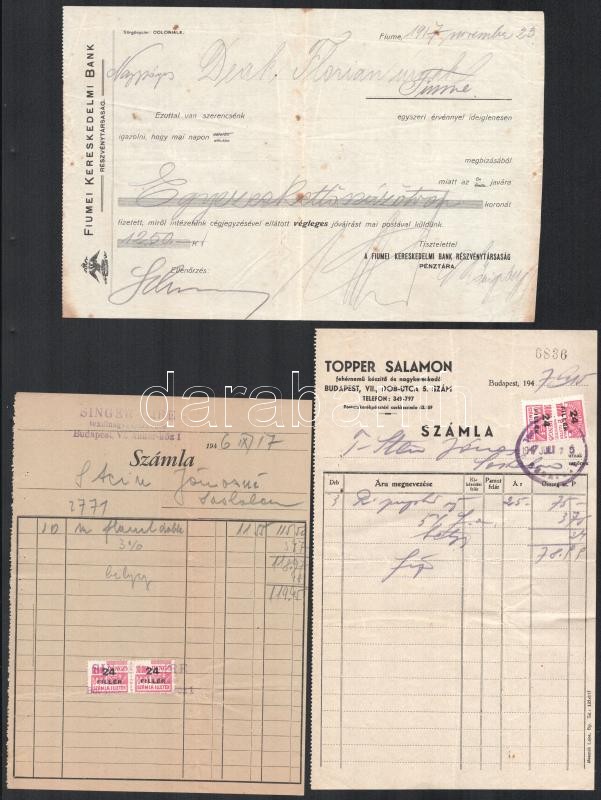 cca 1930 Vegyes fejléces számlák és papírok https://www.darabanth.com/hu/409-Gyorsarveres/409.0/Mutargy-papirregiseg-egyeb/Reklam~500022/cca-1930-Vegyes-fejleces-szamlak-es-papirok~II2540862