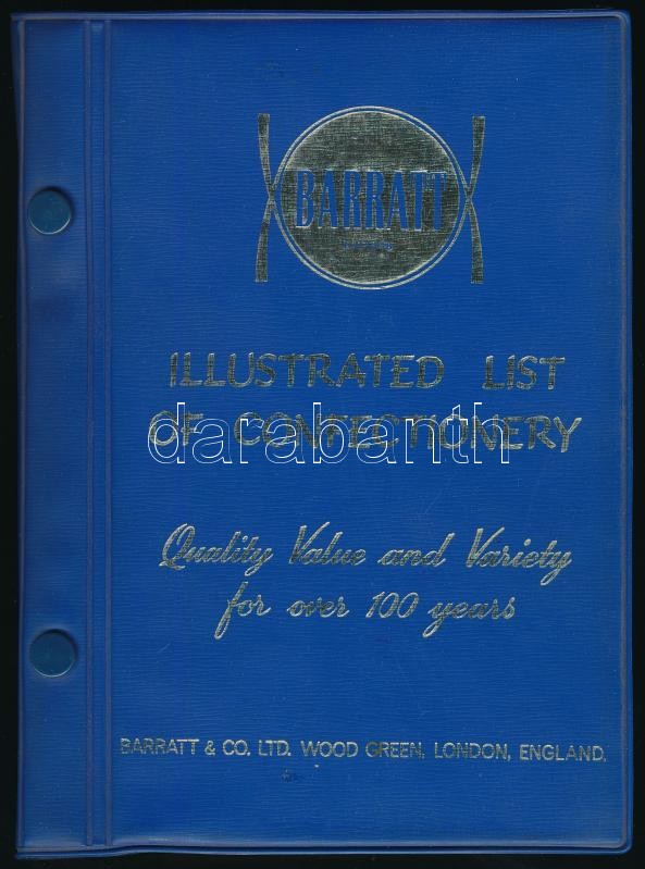 Leírás: cca 1970 Barrat illustrated list of confectionery. 48 kép édességekről termékekről műbőr kötésben