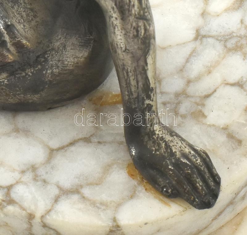 Leírás: Gyümölcs kínáló. Ón szobor, alabástrom talapzaton. Jelzés nélkül. 23x18 cm