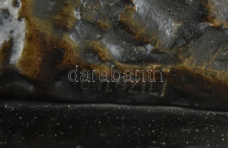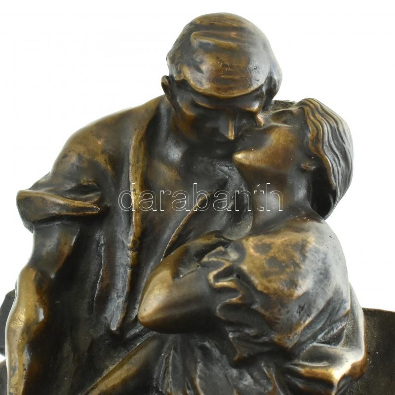 Leírás: Padon ülő enyelgő pár, patinázott bronz, fa talpon. Jelzett, m: 32 cm