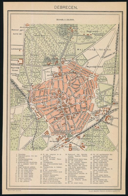 Leírás: cca 1900 Debrecen város térképe, 1:26.000, Pallas Nagy Lexikona, Bp., Pallas Rt.-ny, 21x14 cm
