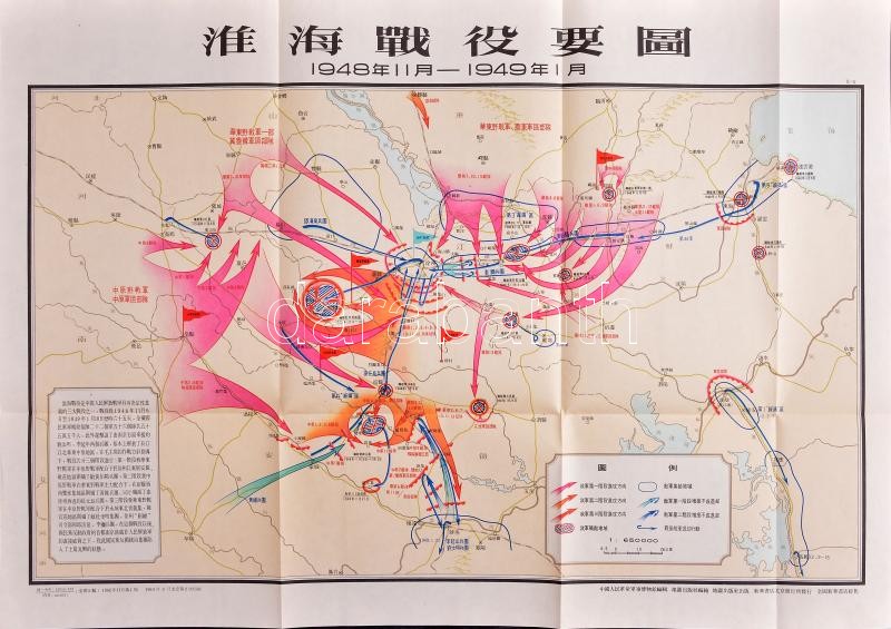 cca 1963 Kínai katonai térkép, 1948-1949 (kínai polgárháború időszaka), 1 : 650.000, hajtva, jó állapotban, 76x54 cm / Chinese military map, 1948-1949 (civil war period), good condition, 76x54 cm
