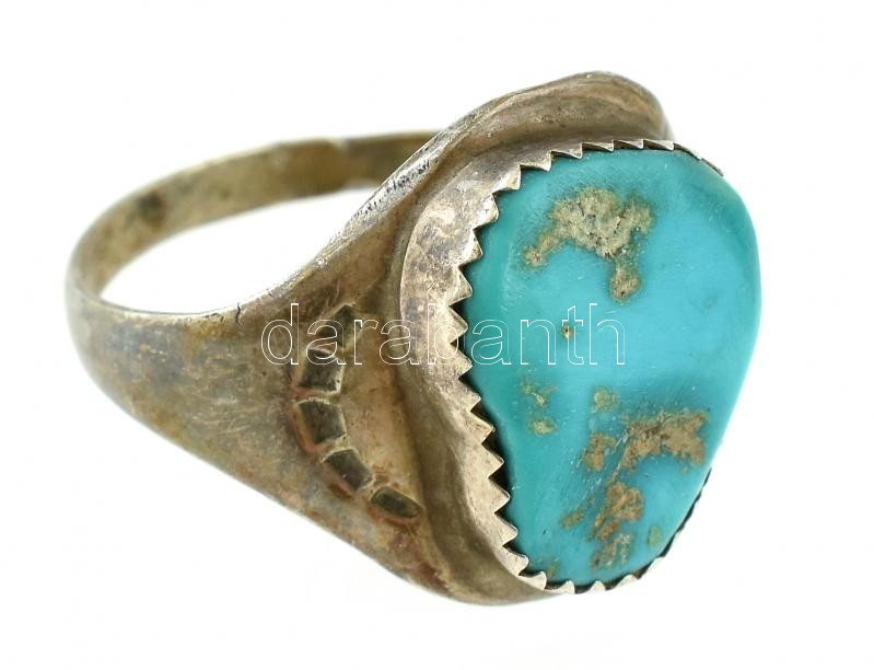 Ezüst(Ag) gyűrű türkizszínű kővel, jelzett, méret: 60, bruttó: 5,6 g https://www.darabanth.com/hu/409-Gyorsarveres/409.0/Nemesfem-Disztargyak-Orak-es-Ekszerek/Nemesfem-Disztargyak-Orak-es-Ekszerek~2000024/EzustAg-gyuru-turkizszinu-kovel-jelzett-meret-60-brutto-5-6-g~II2543419
