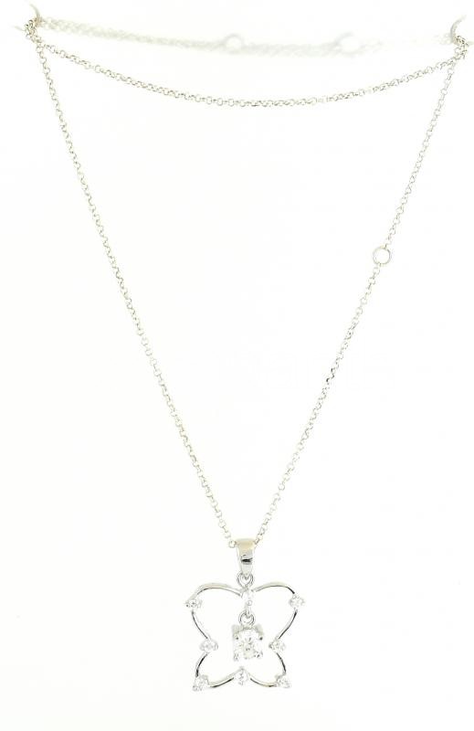 Leírás: Ezüst(Ag) virágos ékszerszett, nyaklánc és fülbevalópár, jelzett, bruttó: 8,68 g