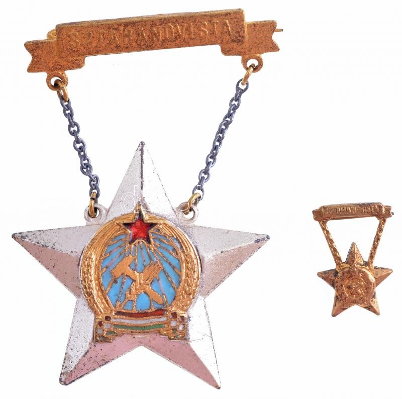 Leírás: 1953. "Sztahanovista" arany fokozat, zománcozott fém kitüntetés tokban, miniatűrrel T:2