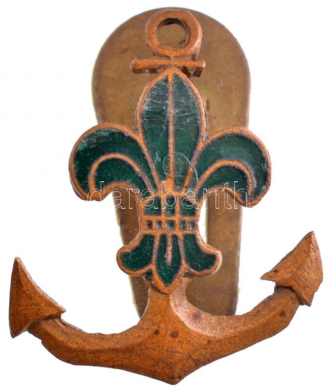 Leírás: ~1938. "Vizicserkész" zománcozott Br gomblyuk jelvény "Cserkészbolt V. N Sándor u.6." gyártói jelzéssel (20x17mm) T:2 zománchiba