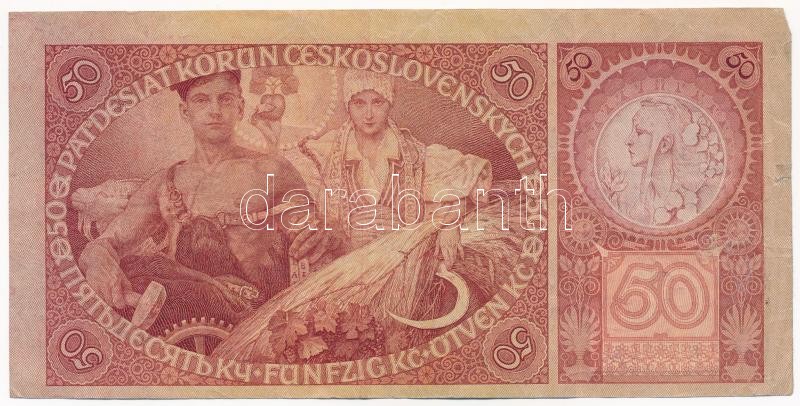 Czechoslovakia 1920. 50 K... https://www.darabanth.com/hu/409-Gyorsarveres/409.0/Numizmatika/Kulfoldi-bankjegyek~2500013/Csehszlovakia-1920-50K-TIII-apro-szakadas-Czechoslovakia-1920-50-Korun-CF-tiny-tear-Krause-~II2542286