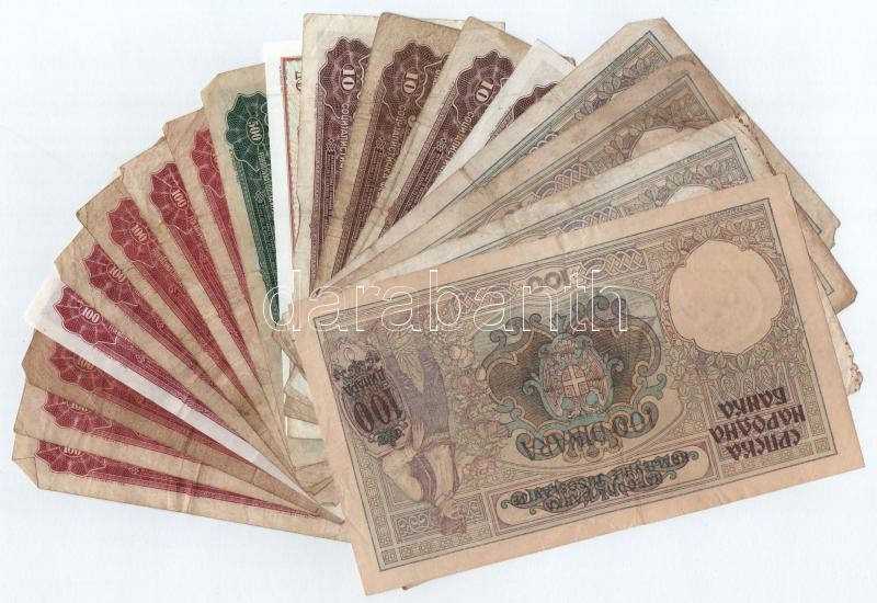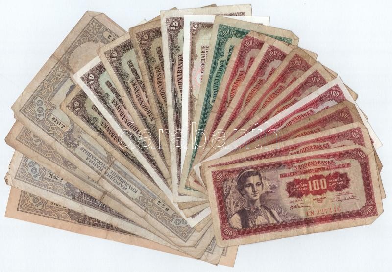Leírás: Jugoszlávia 1929. 100D "I. Sándor" vízjel (2x) + Szerbia / Német megszállás 1941. 100D (2x) + Jugoszlávia 1955-1968. 10D-500D (15db) T:I-III-