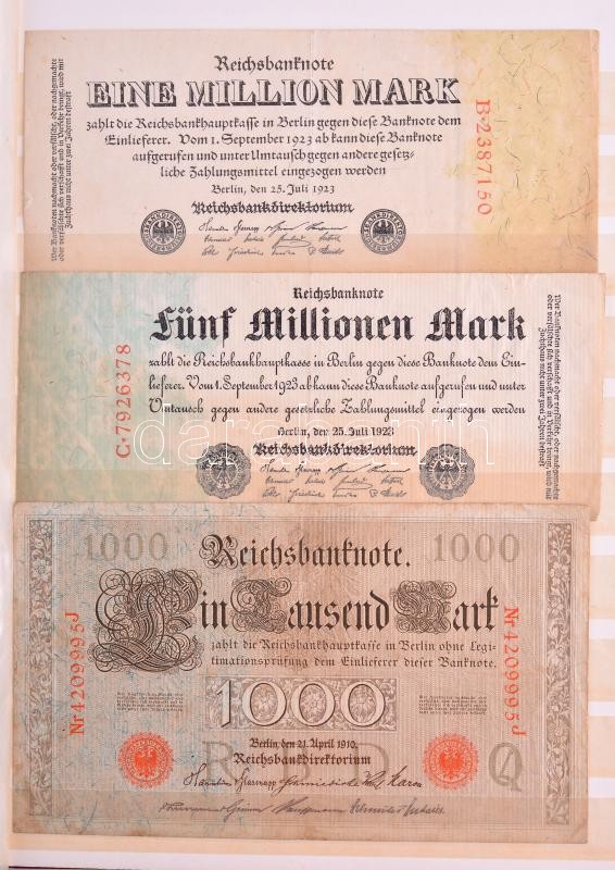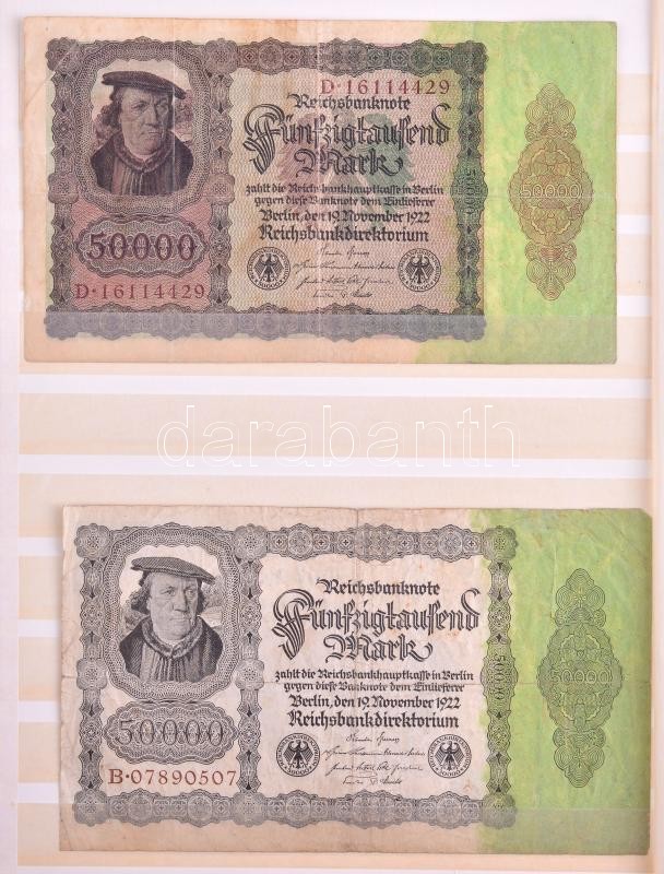 Német Birodalom / Weimar Köztársaság 50db-os, főleg inflációs bankjegy tétel bélyegalbumba rendezve, mind különféle, egyes névértékek több változatban (eltérő színű, típusú sorszámok stb) T:vegyes
