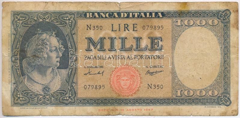 Krause P#8... https://www.darabanth.com/hu/409-Gyorsarveres/409.0/Numizmatika/Kulfoldi-bankjegyek~2500013/Olaszorszag-1947-1000L-TIII--Italy-1947-1000-Lire-CVG-Krause-P2383~II2533645