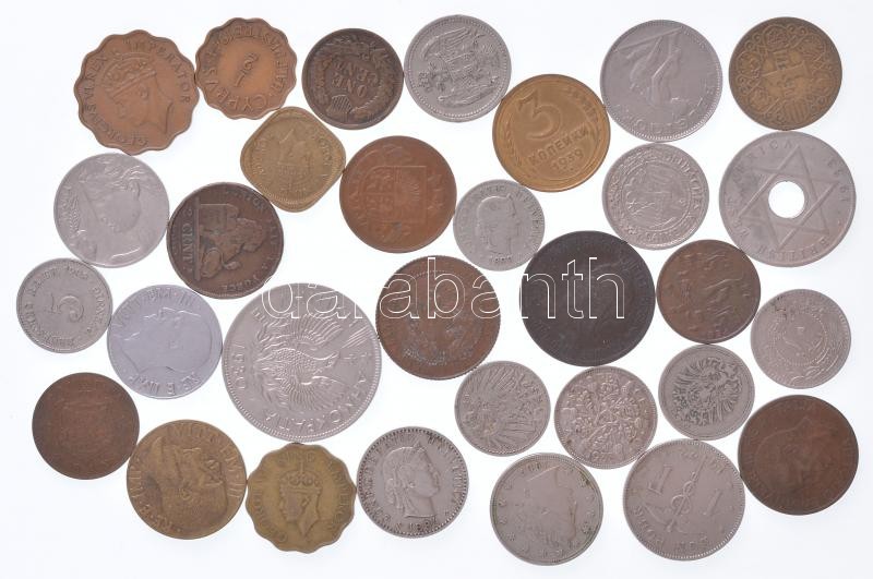 31db vegyes külföldi fémpénz jobb darabokkal, közte Lettország 1922. 5s Br + Belgium 1870. 2c Cu + Amerikai Egyesült Államok 1900. 1c Br Cu T:1--3