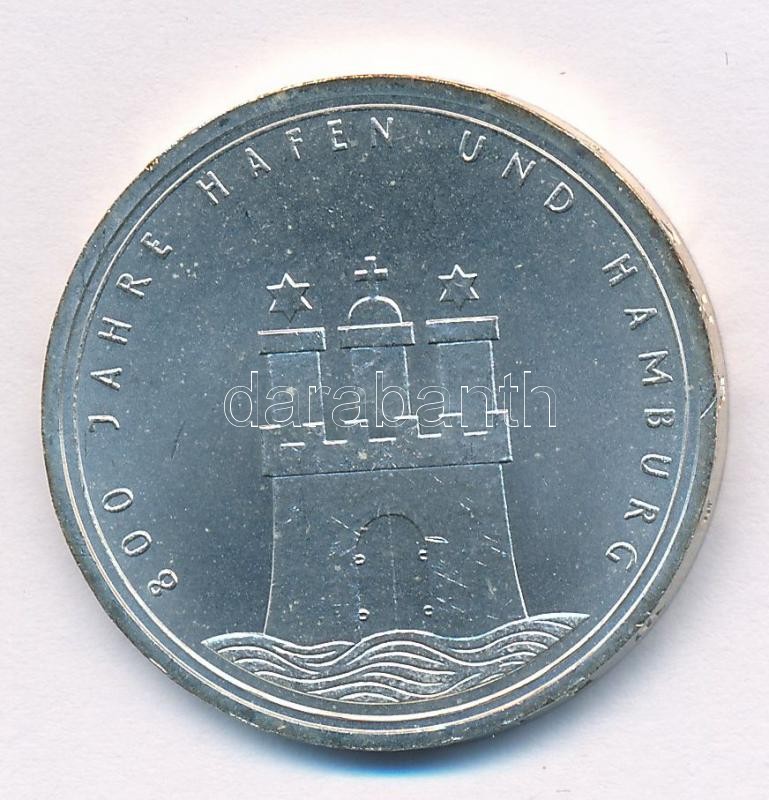 NSZK 1989J 10M Ag "800 éves Hamburg kikötője" tanúsítvánnyal T:1- kis patina FRG 1989J 10 Mark Ag "800th Anniversary - Port of Hamburg" with certificate C:AU small patina edge error Krause KM# 171