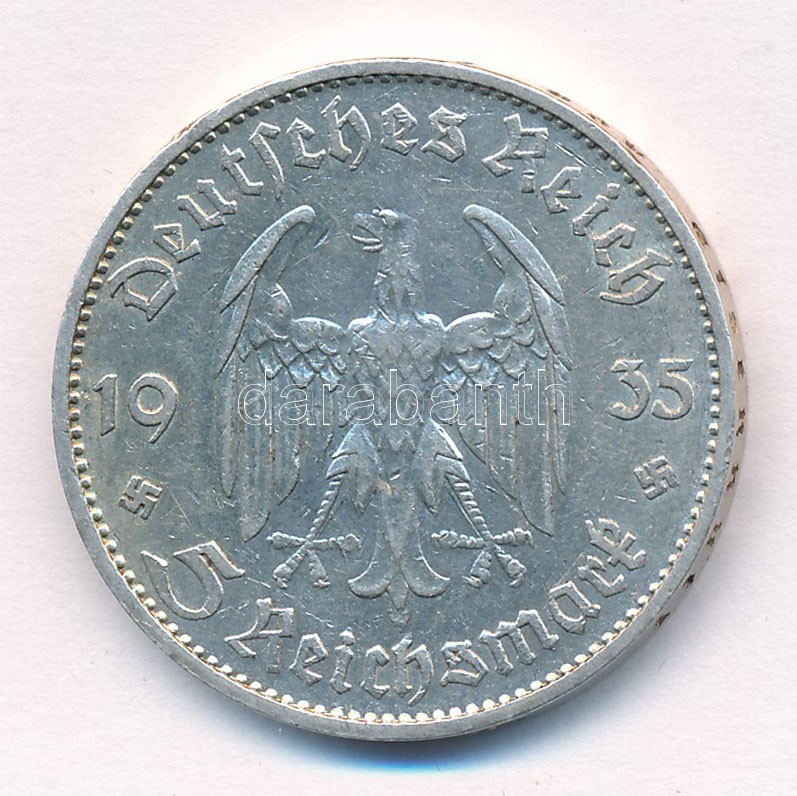 Germa... https://www.darabanth.com/hu/409-Gyorsarveres/409.0/Numizmatika/Kulfoldi-fem-es-ezustpenzek~2500014/Nemet-Harmadik-Birodalom-1935D-5M-Ag-Hindenburg-T2-German-Third-Reich-1935D-5-Mark-Ag-Hindenbu~II2532699