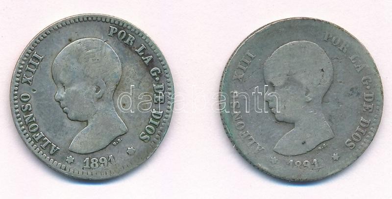 Leírás: Spanyolország 1891PG-M 1P Ag "XIII. Alfonz" (2x)T:3 patina, ph.