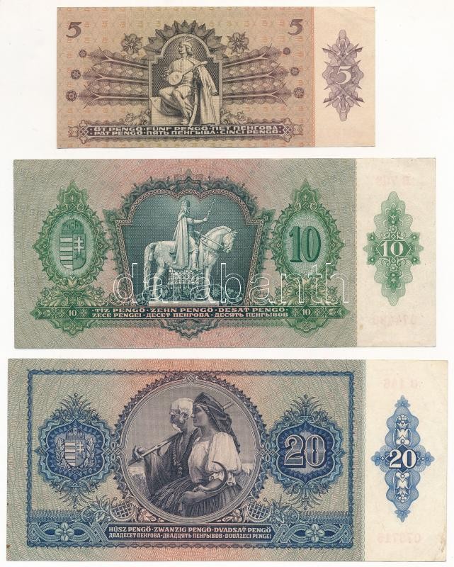 Leírás: 1930. 100P + 1930. 100P csillagos sorozatszám + 1932. 50P + 1936. 10P + 1939. 5P + 1941. 20P T:III