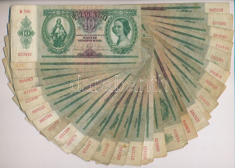 1936. 10P (30x) T:III,III- Adamo P9 https://www.darabanth.com/hu/409-Gyorsarveres/409.0/Numizmatika/Magyar-bankjegyek~2500007/1936-10P-30x-TIII-III-Adamo-P9~II2532905