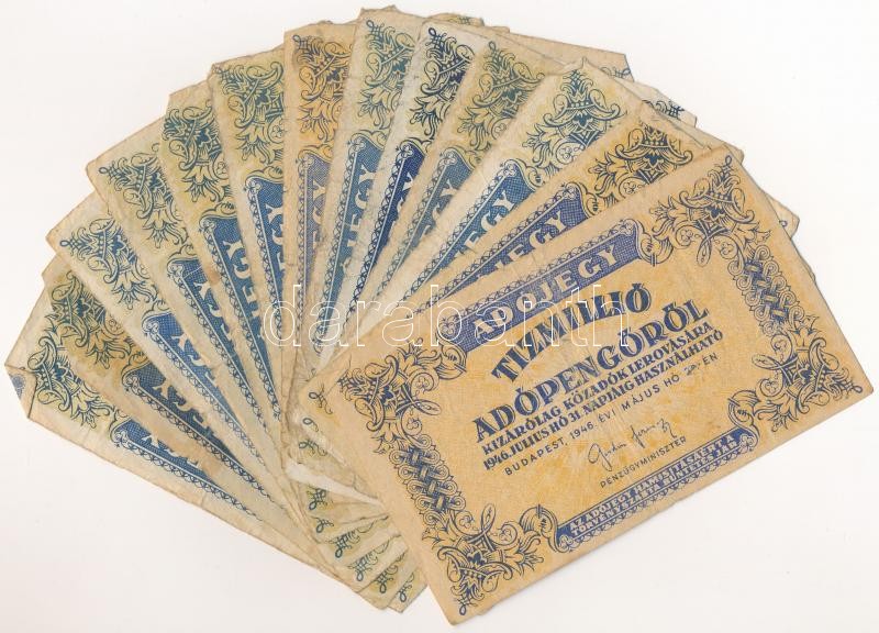 1946. 10.000.000AP (13x), közte 2db sárgás vízjeles papíron, fordított... https://www.darabanth.com/hu/409-Gyorsarveres/409.0/Numizmatika/Magyar-bankjegyek~2500007/1946-10000000AP-13x-kozte-2db-sargas-vizjeles-papiron-forditott-cimerrel-TIII-IV-Ada~II2542402