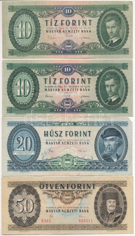Leírás: 1962-1969. 10Ft (2xklf) + 1980. 20Ft + 1980. 50Ft T:III
