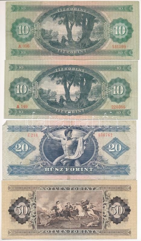 1962-1969. 10Ft (2xklf) + 1980. 20Ft + 1980. 50Ft T:III https://www.darabanth.com/hu/409-Gyorsarveres/409.0/Numizmatika/Magyar-bankjegyek~2500007/1962-1969-10Ft-2xklf-plus-1980-20Ft-plus-1980-50Ft-TIII~II2540755