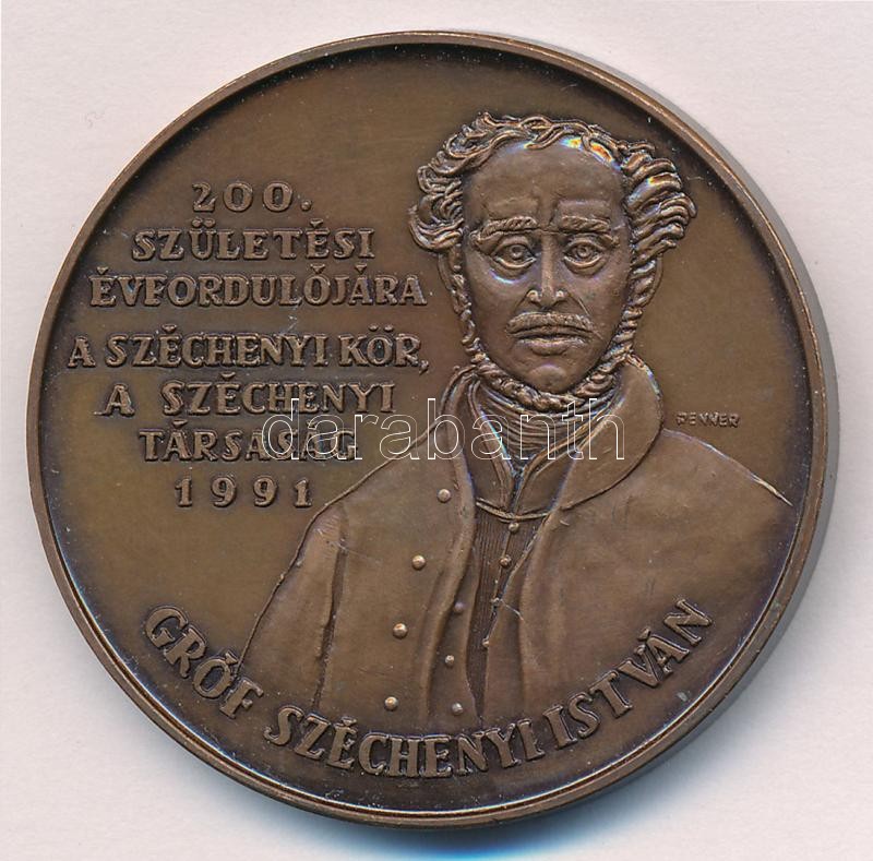 Leírás: Renner Kálmán (1927-1994) 1991. "Gróf Széchenyi István 200. születési évfordulójára" bronz emlékérem (42,5mm) T:1