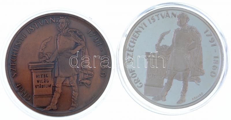 Renner Kálmán (1927-1994) 1991. "MÉE Sopron XXI. Vándorgyűlés / Gróf Széchenyi István" (2xklf) bronz és jelzett Ag emlékérem pár kapszulában (36,64g/0.835/42,5mm) T:1 (eredetileg PP)