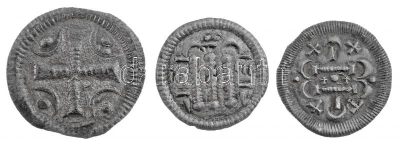 1131-1141. Denár Ag "II. Béla" (3xklf) (0,20g, 0,28g, 0,37g) T:1-2 patina / Hungary 1131-1141. Denár Ag "II. Béla" (3xdiff) (0,20g, 0,28g, 0,37g) C:UNC-XF patina Huszár: 54., 82., 99., Unger I.: 50., 51., 52.