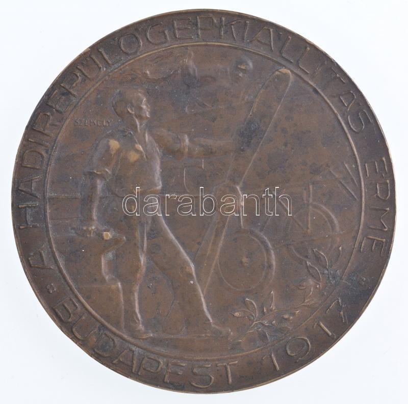 Leírás: Székely Károly (1882-1941) 1917. "Hadirepülőgépkiállítás érme - Budapest 1917" egyoldalas Br emlékérem (61mm) T:2